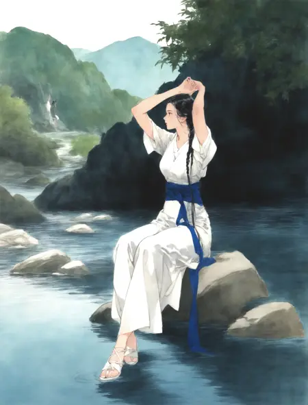 chinese ink style、traditional media、color ink (medium)、ink (medium)などのキーワードの重みを調整することで、異なるタイプの半写意スタイルを生成できます。