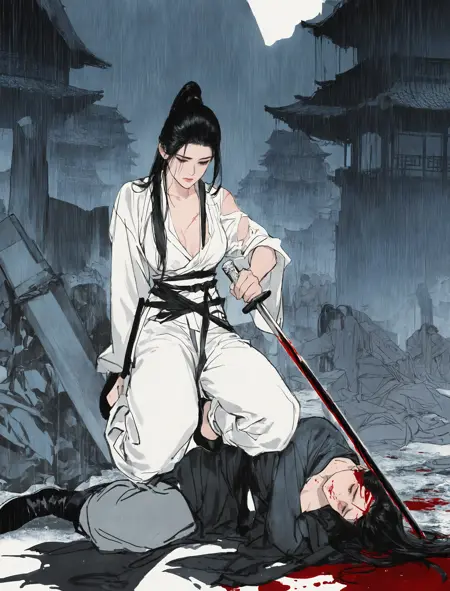 重新用Zero Terminal SNR和alpha1参数训练了Lora并融合,同时调整了融合比例。现在的笔触更细腻,身体比例和对暗场景的适应性更好。缺点是对close-up的响应不好,容易画成全身像和远视角。