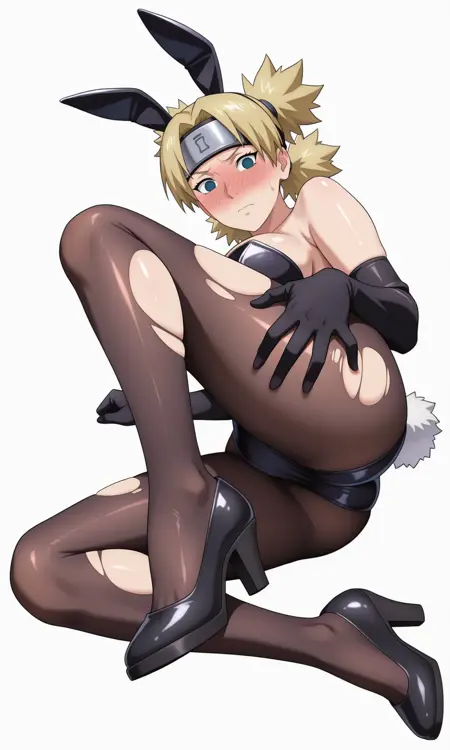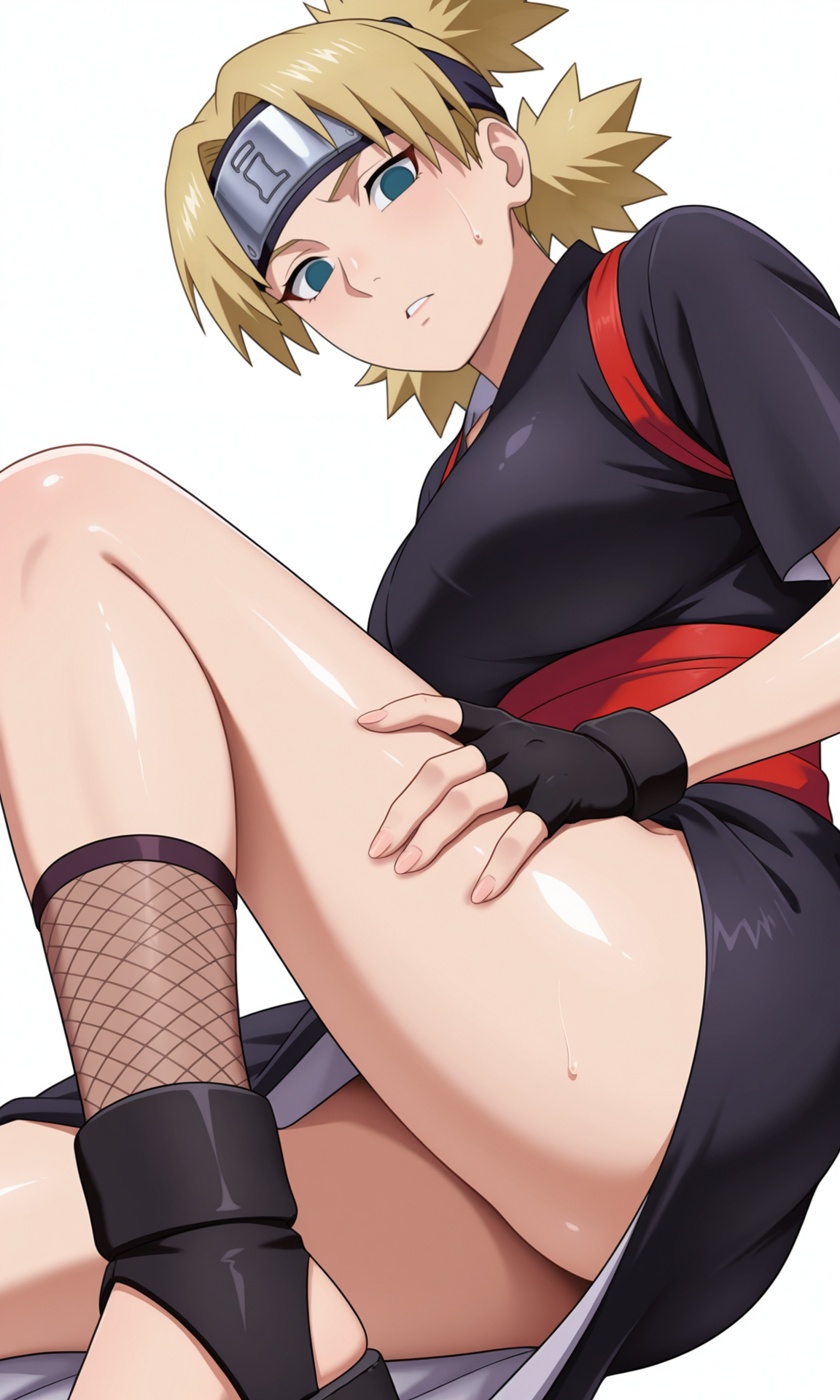 tmrshippuden, 1girl, solo, looking at viewer, quad tails, forehead protector, no pupils,