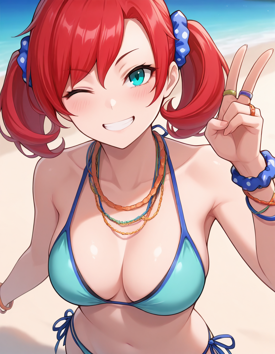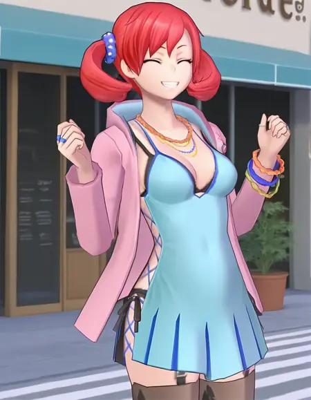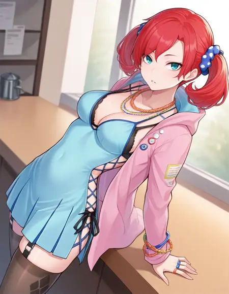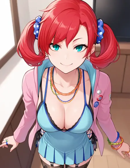 트리거 단어: shiraminenokia, 빨간 머리, 트윈테일, 파란 스쿠نش, 점무늬 스쿠ENCH, 아쿠아 눈동자