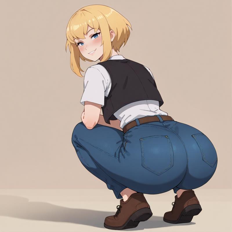 KaraZor-El, 金色头发, 短发, 侧发, 蓝眼睛, 裤子, 白衬衫, 背心, 牛仔裤, 皮带, 鞋子,