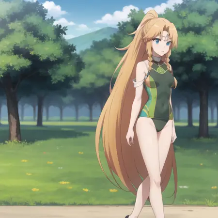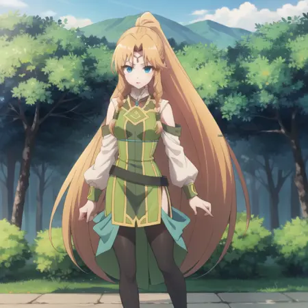 触发词:icm-muller,长发,金发,蓝眼睛,双马尾,绿色连衣裙连裤袜