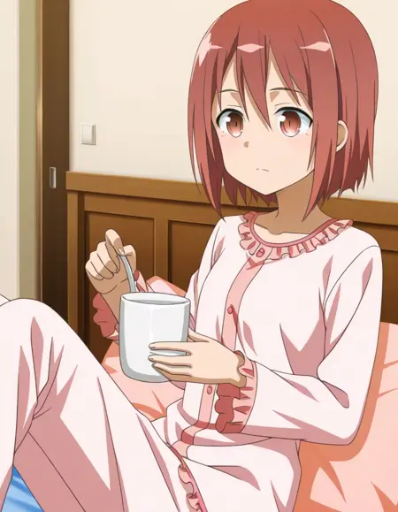 lora:yuukiyuuna-ILXL-v2:1.0,(yuukiyuuna:1.0),(red_hair,red_eyes:1.0),(pajamas:1.0),