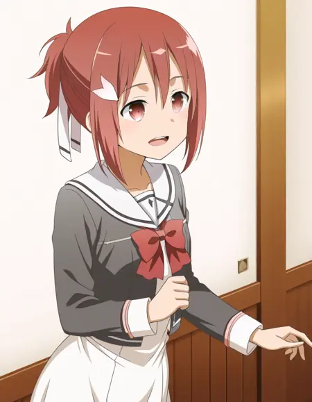 lora:yuukiyuuna-ILXL-v2:1.0,(yuukiyuuna:1.0),(red_hair,red_eyes,ponytail,hair_ornament:1.0),(gray_school_uniform,gray_cardigan,white_sundress,long_sleeves,red_bowtie:1.0),