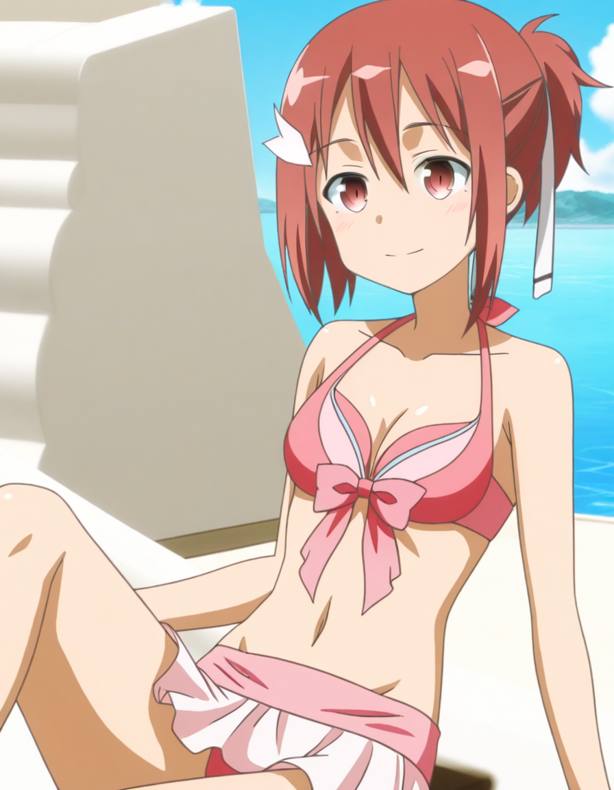 lora:yuukiyuuna-ILXL-v2:1.0,(yuukiyuuna:1.0),(red_hair,red_eyes,ponytail,hair_ornament:1.0),(bikini:1.0),