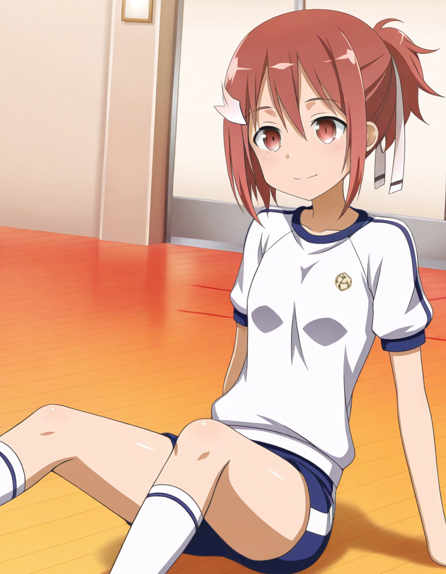 lora:yuukiyuuna-ILXL-v2:1.0,(yuukiyuuna:1.0),(red_hair,red_eyes,ponytail,hair_ornament:1.0),(gym_uniform:1.0),