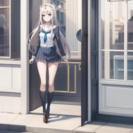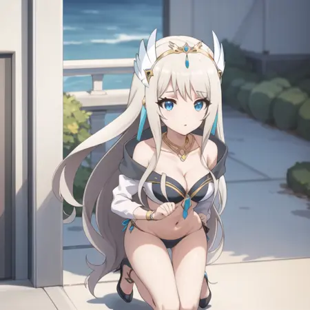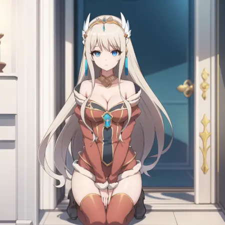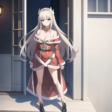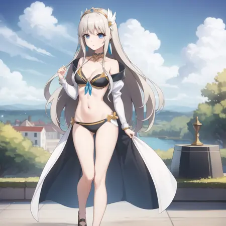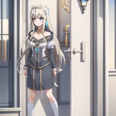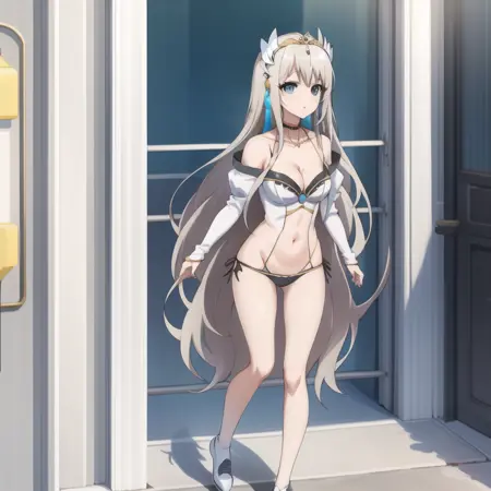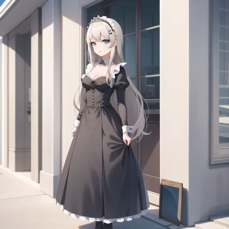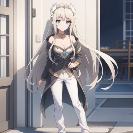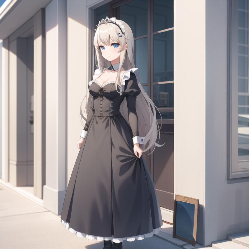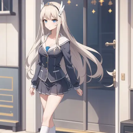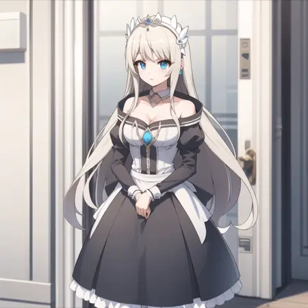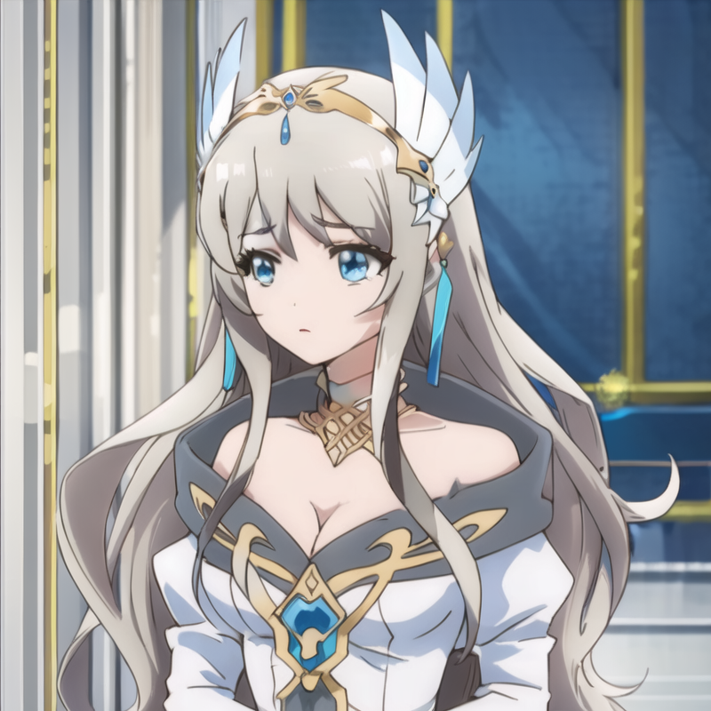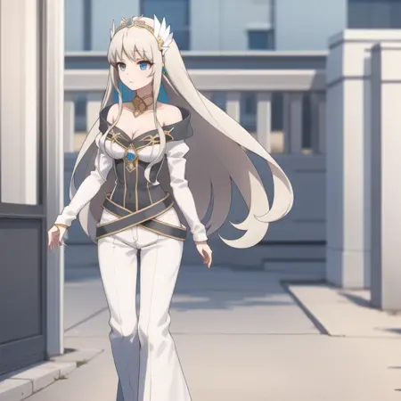 触发词:icm-charlotte,铂金色头发,长发,蓝眼睛,白色裙子