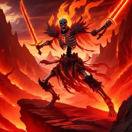 外見:骨格戦士は、通常、人間または人型の骨格として描かれ、古代の鎧を身にまとい、剣、斧、槍などのさまざまな武器を手にしている。その骨は幽霊のような光を放ち、彼らの異世界的な存在感をさらに高める。