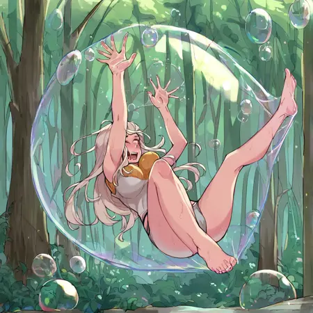 バブル内の女性キャラクターを学習させました。バブルは完璧な球体ではありません。一般的なフレーズ:
