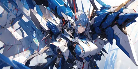 本意是想要训练一个像动画Darling in the franxx(国家队)中那种拟人化的高达,就是有点像少女的那种,但是结果来说没能做出那种,反而变成了机甲少女的感觉,不过也行吧,画风我还挺喜欢的,值得一提的是,它不是只能画美少女机甲,纯正的高达机甲也是可以画出来的,然后权重别太高0.8差不多了。推荐的tag