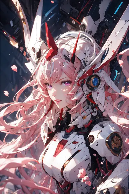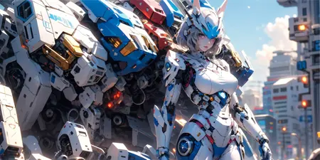 本意是想要训练一个像动画Darling in the franxx(国家队)中那种拟人化的高达,就是有点像少女的那种,但是结果来说没能做出那种,反而变成了机甲少女的感觉,不过也行吧,画风我还挺喜欢的,值得一提的是,它不是只能画美少女机甲,纯正的高达机甲也是可以画出来的,然后权重别太高0.8差不多了。推荐的tag