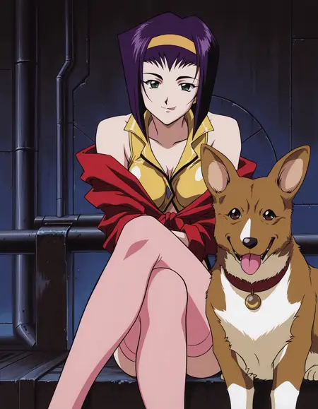 A Patreon member wanted to see some pictures of Faye. Since I'd wanted to make my own model of Faye for a while anyway, this gave me a great excuse to make my own! However, I knew immediately that I wanted to include the best anime doggo in this model (even if Ein is generally paired with Ed in the anime)! So this is effectively a 2-in-1 of Faye and Ein! Solo and duo images are both possible, at least when generated locally on GUI; for the latter, I recommend an extension, like Forge Couple.