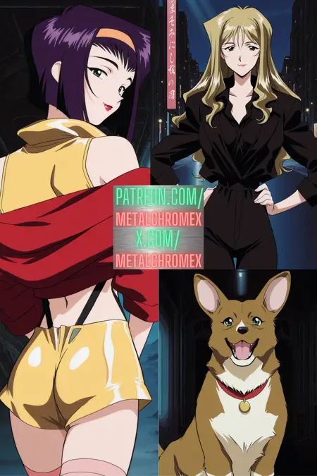 A Patreon member wanted to see some pictures of Faye. Since I'd wanted to make my own model of Faye for a while anyway, this gave me a great excuse to make my own! However, I knew immediately that I wanted to include the best anime doggo in this model (even if Ein is generally paired with Ed in the anime)! So this is effectively a 2-in-1 of Faye and Ein! Solo and duo images are both possible, at least when generated locally on GUI; for the latter, I recommend an extension, like Forge Couple.