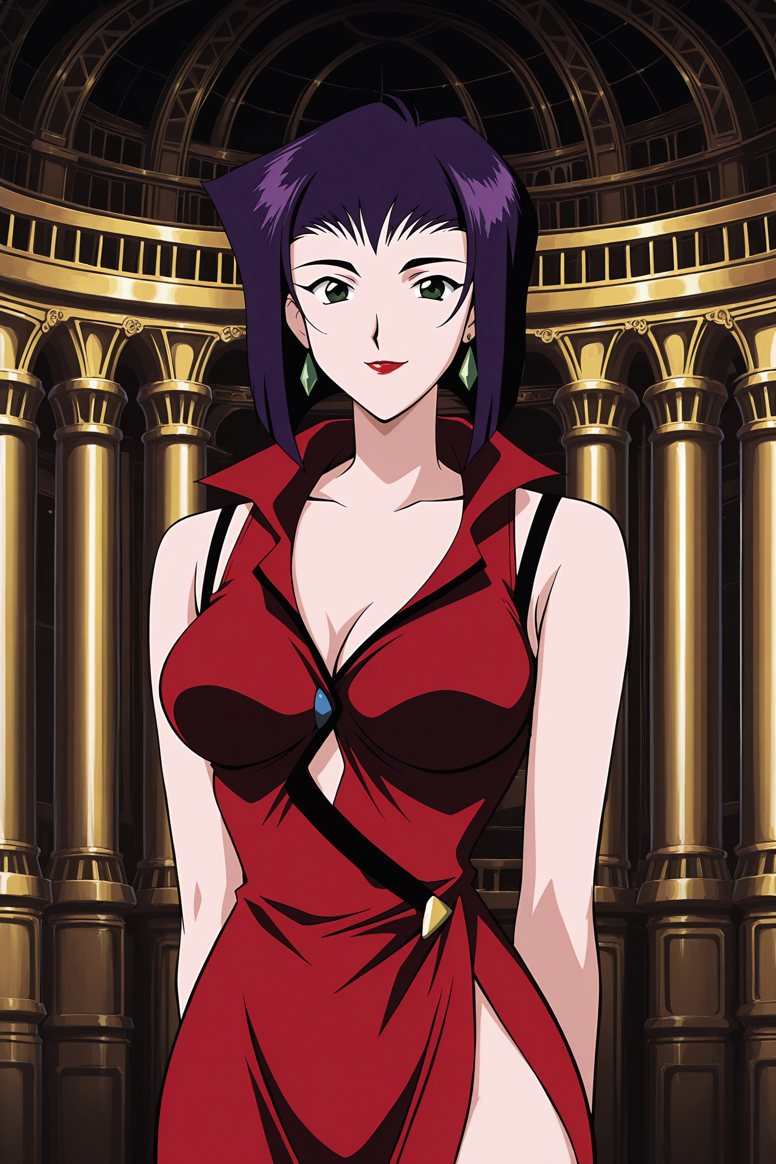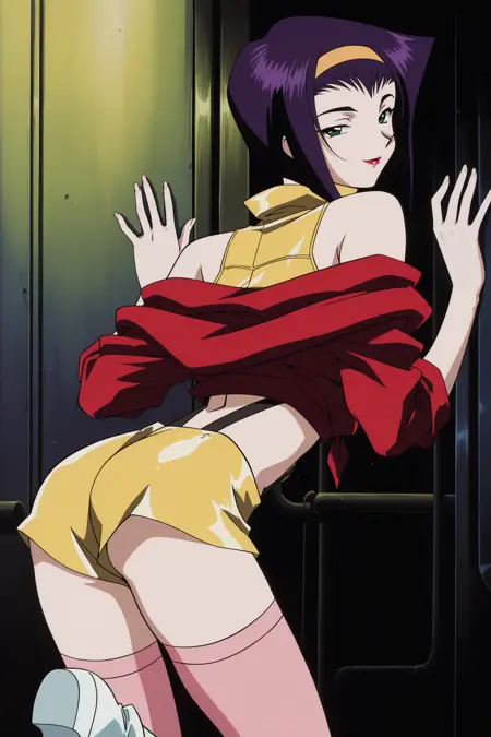 虽然我尝试复现《堕天使之歌》中 Faye 穿的红色连衣裙,但因她在剧中的出场时间不足,难以准确还原;你可以勉强接近,但效果并不理想,因此请不要期待能生成这套服饰的图像。
