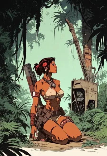 This LoRA is trained to reproduce a vintage illustrated comic style, with a focus of detailed line art and minimalist colors.