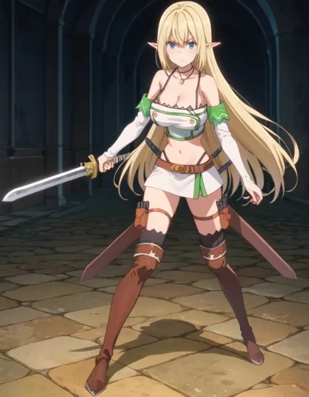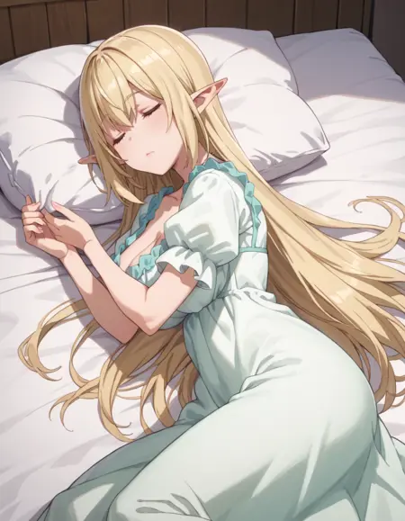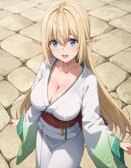 aria (beheneko), 精灵, 极长发, 金色头发, 尖耳朵, 头发遮住眼睛, 蓝眼睛
