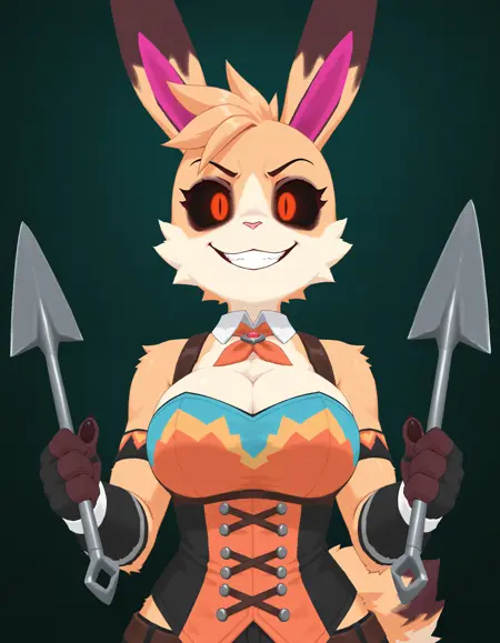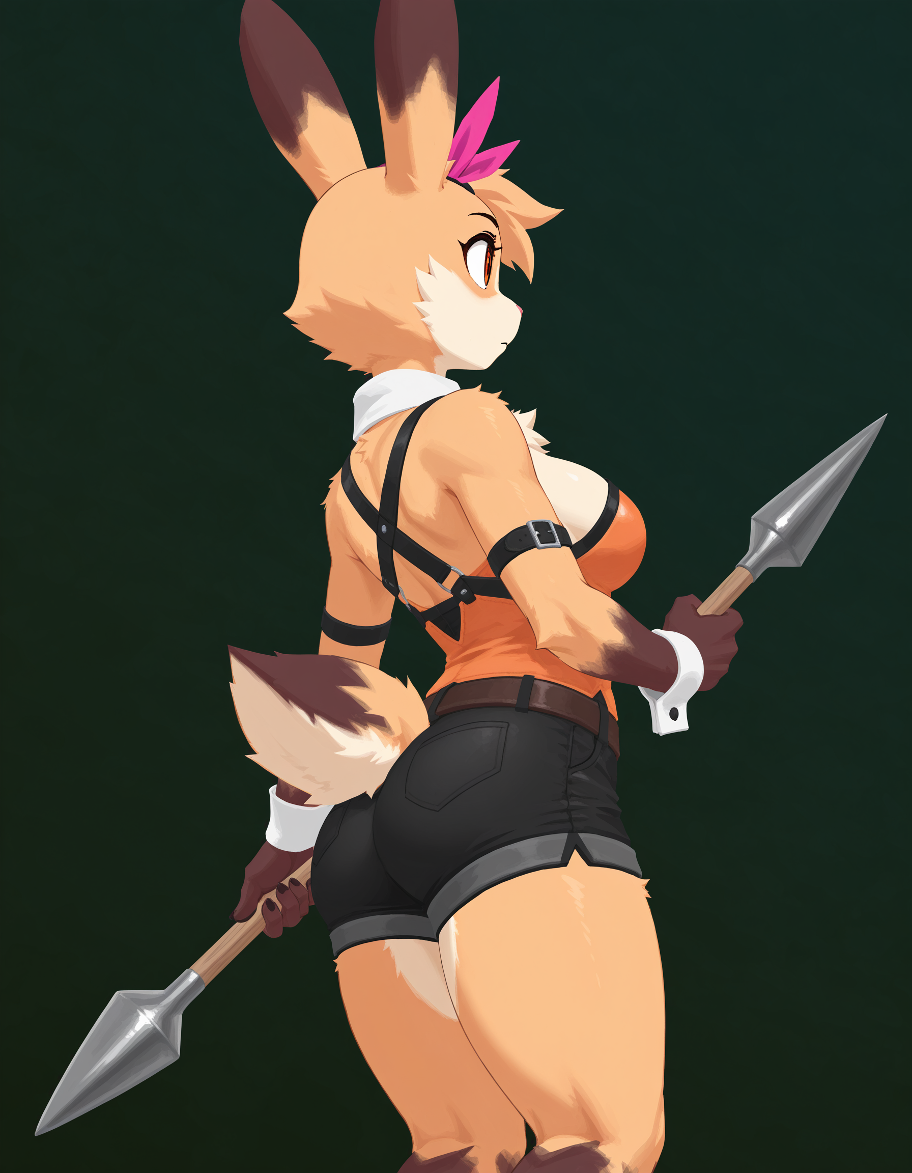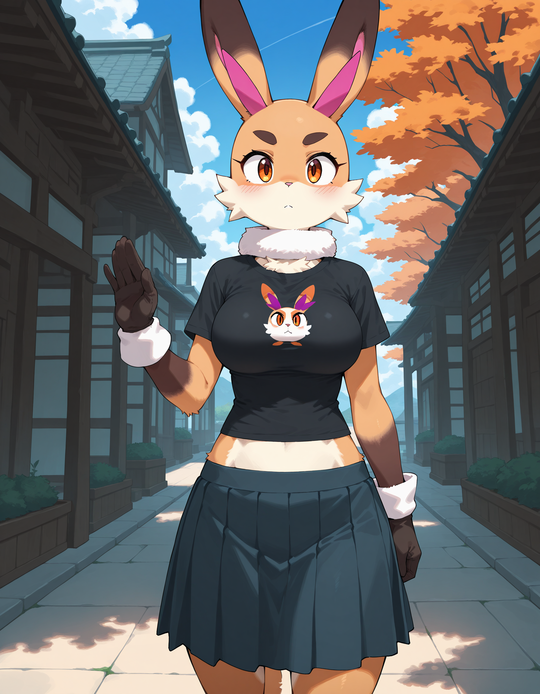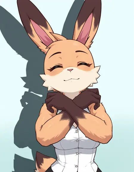 solo, two-tone fur, furry female, rabbit ears, fur collar, body fur, rabbit girl, looking at viewer, white fur, tail, gloves