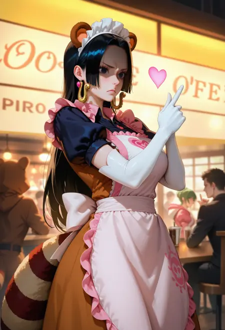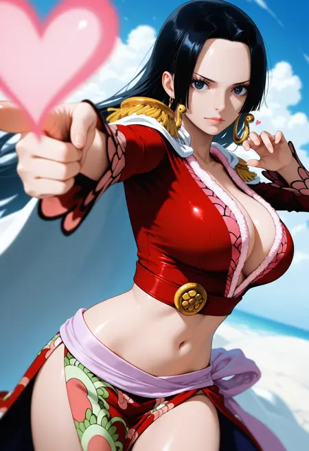 또한, 프롬프트를 통해 그녀의 악마의 과일 능력을 생성할 수 있습니다: "심장 에너지, 빛나는 심장, 손가락 총 제스처/심장 손 제스처" 등.