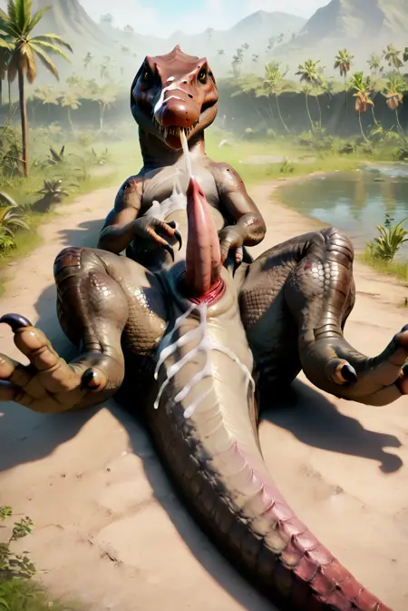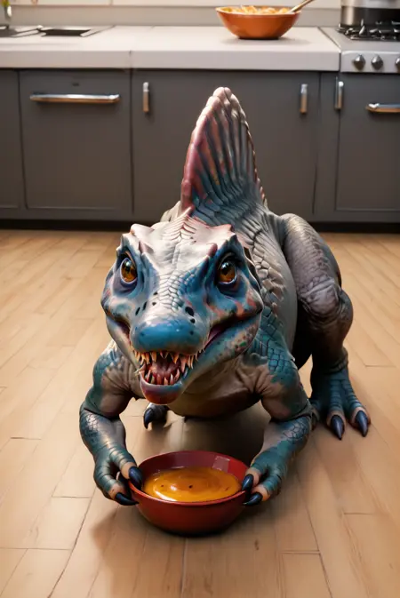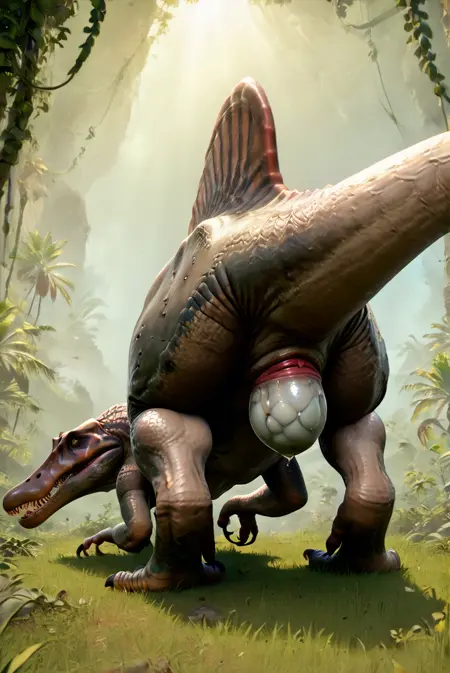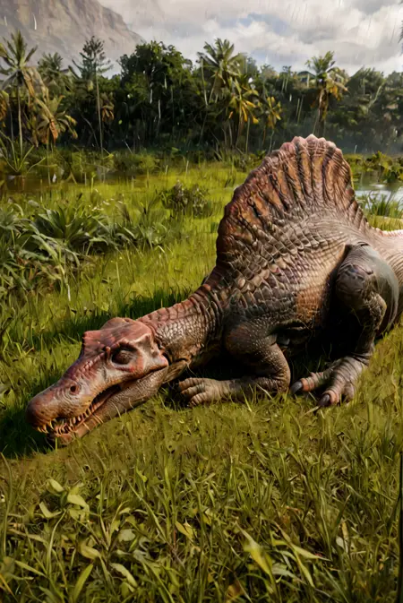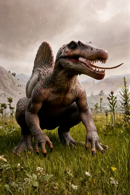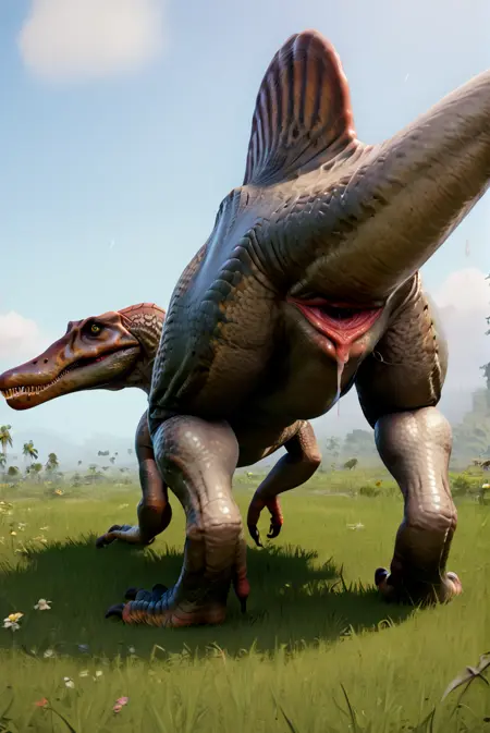 추가 프롬프트: dinosaur, scalie, broad snout, elongated snout, back sail