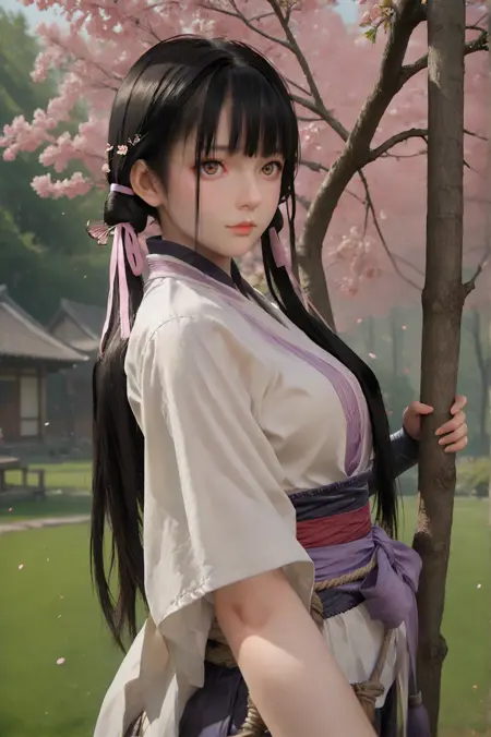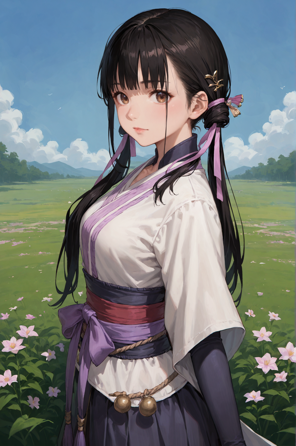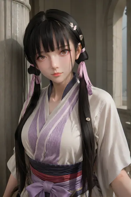 sis_li, 1girl, solo, 黑发, 长发, 双马尾, 腰带, 丝带, 棕色眼睛, 刘海, 发饰