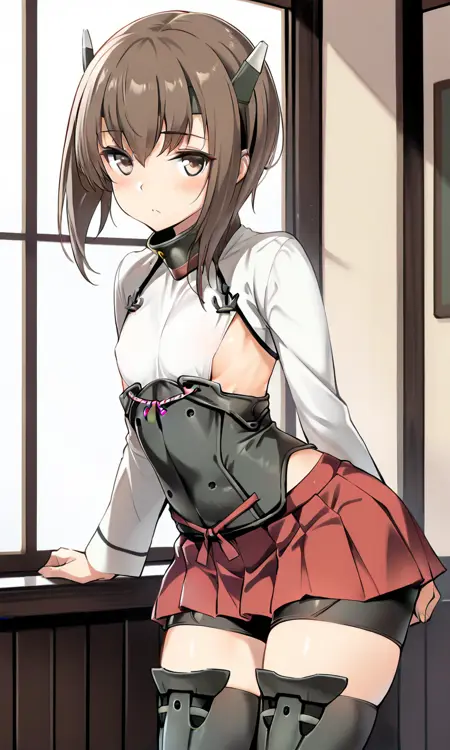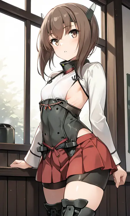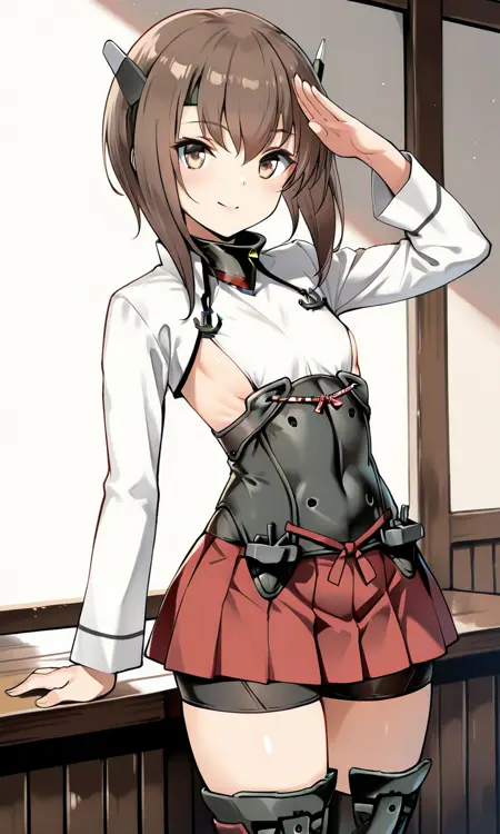 默认装扮: taihouKC,taihou (kancolle), bob_cut,棕色头发,棕色眼睛,百褶裙,红色裙子,骑行短裤,黑色过膝袜,额前发带,头饰,袴短裙,裙下短裤,紧身胸衣,长袖,平坦胸部,鬓角,白色袖子,侧乳,眼睛之间的头发