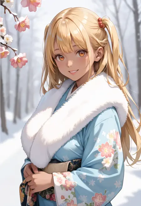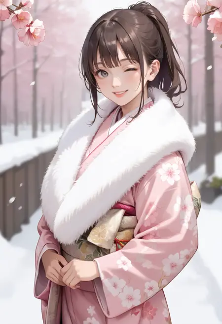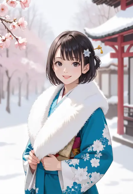트리거 단어: furisode with fur, furisode, kimono, fur