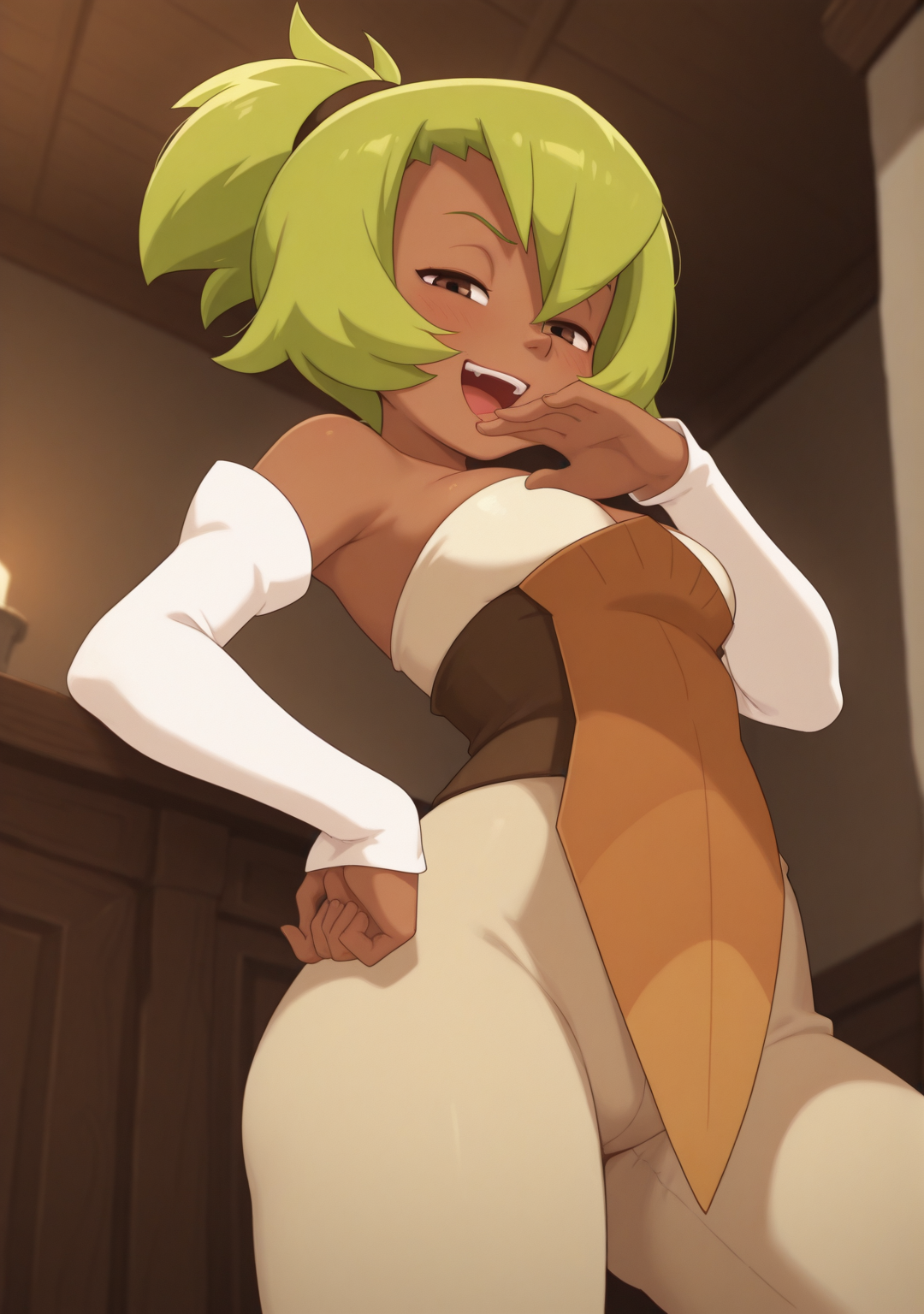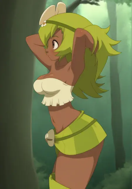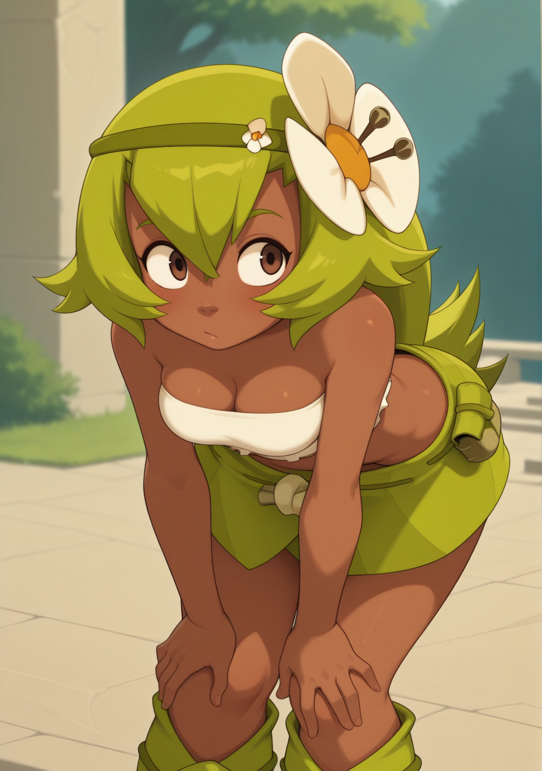Base Prompts: illuamalia, dark-skinned female, brown eyes, green hair
