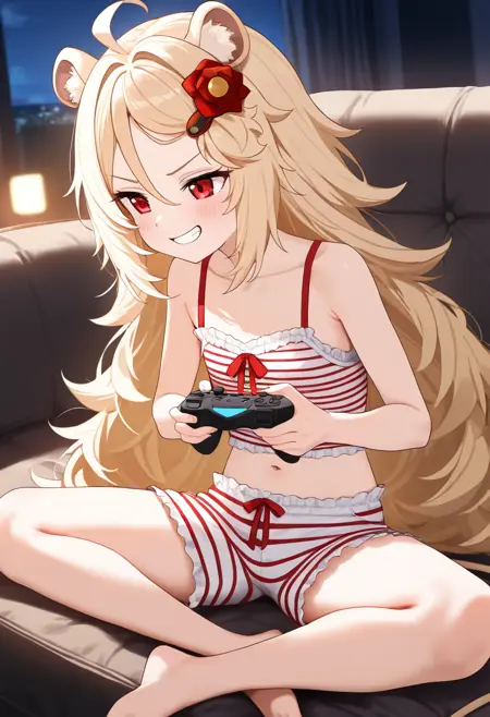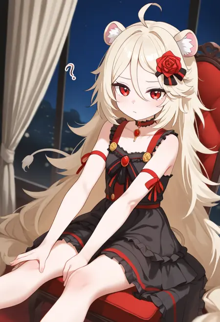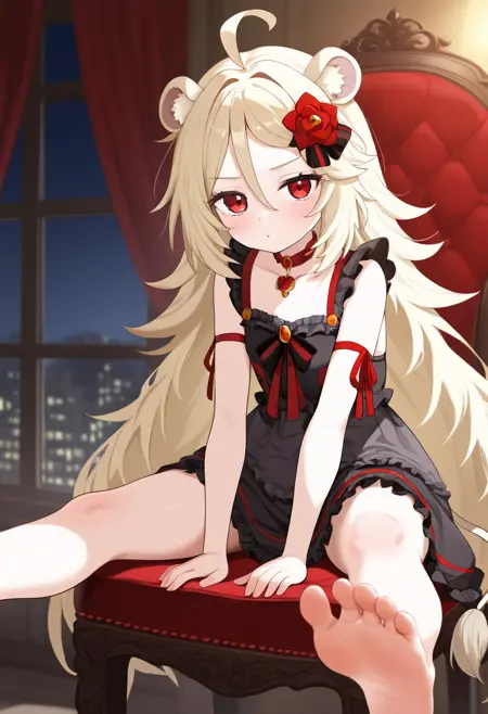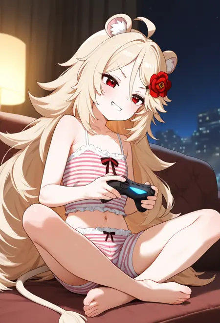 红色眼睛、超长发、金色头发、动物耳朵、呆毛、发饰、发花、尾巴、狮子尾,