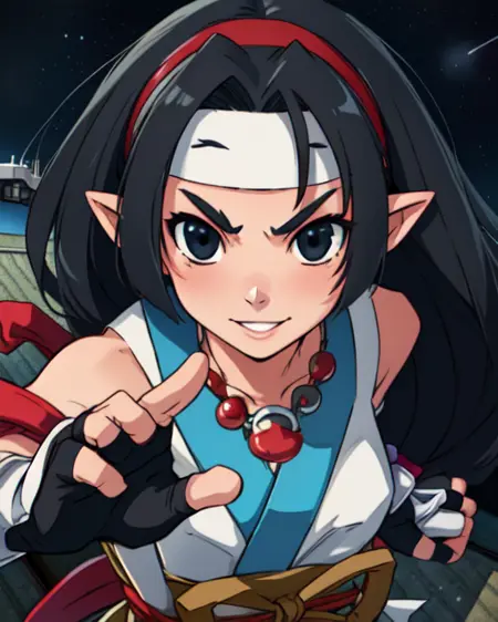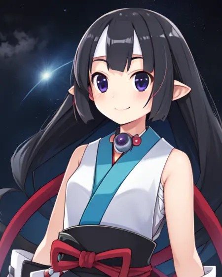유키타루, 검은 눈, 낮게 묶은 긴 머리, 뾰족한 귀