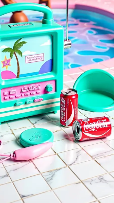 ピンクの看板の上に置かれたコカ・コーラの缶