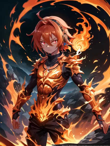 도움이 될 수 있는 추가 단어: 빛나는 눈, 불꽃 몸, 주황색 피부, 용융된 암석, 암석, 갑옷 (NSFW 결과가 나온다면 갑옷을 사용해 보세요. 이는 모델에 따라 달라질 수 있습니다)