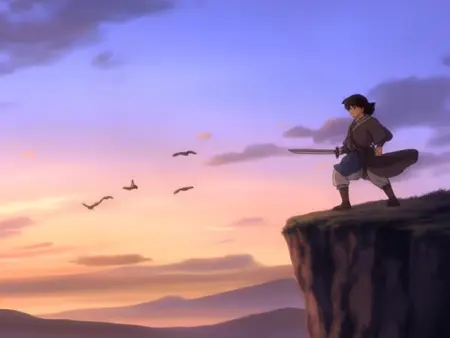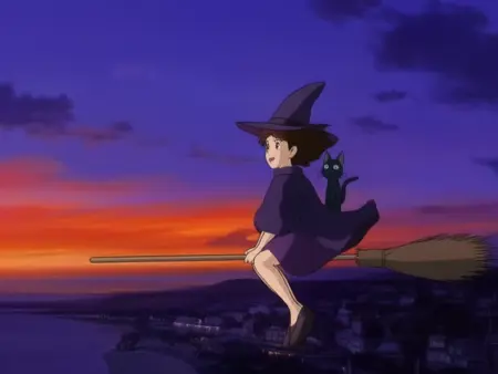 Create a very detailed description of this image as if it was a frame from Studio Ghibli movie. The description should necessarily 1) describe the main content of the scene, detail the scene's content, which notably includes scene transitions and camera movements that are integrated with the visual content, such as camera follows some subject 2) describe the environment in which the subject is situated 3) identify the type of video shot that highlights or emphasizes specific visual content, such as aerial shot, close-up shot, medium shot, or long shot 4) include description of the atmosphere of the video, such as cozy, tense, or mysterious. Do not use numbered lists or line breaks. IMPORTANT: output description MUST ALWAYS start with unaltered phrase 'A scene from Studio Ghibli animated film, featuring...', and then insert your detailed description.