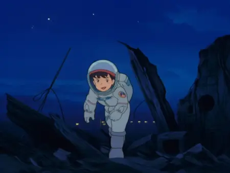 この画像をスタジオジブリのアニメ映画の1コマであるかのように、非常に詳細に描写してください。描写には必ず以下の4項目を含めてください:1) シーンの主な内容と、カメラの動きやシーンの遷移などの視覚的要素と一体化した描写(例:カメラが対象を追う)2) 対象が置かれている環境の描写 3) 視覚的コンテンツを強調する映像の種類(例:空撮、クローズアップ、ミディアムショット、ロングショットなど)4) 動画の雰囲気(例:居心地が良い、緊張感のある、謎めいたなど)。番号リストや改行は使用しないでください。重要:出力の記述は必ず、変更せずに「A scene from Studio Ghibli animated film, featuring...」というフレーズで始めて、その後に詳細な描写を続けます。