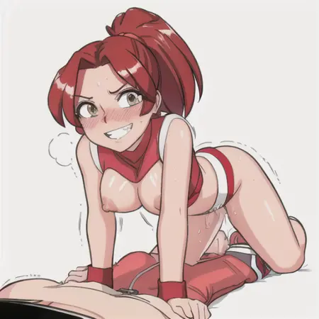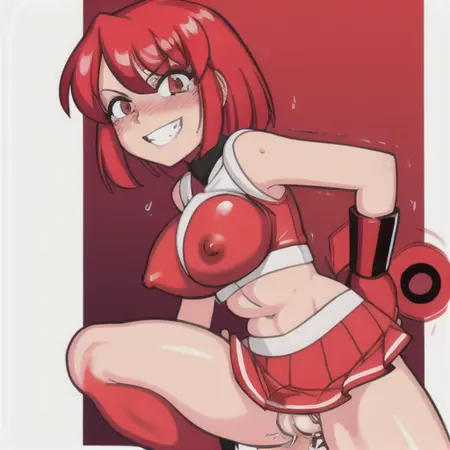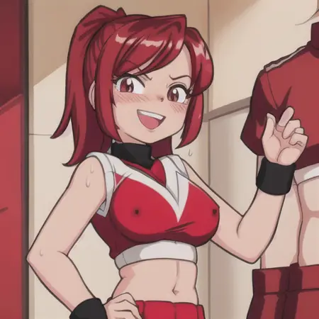 프롬프트: "빨간 옷", 크롭탑, 팔 벗기