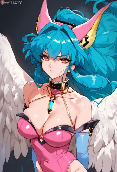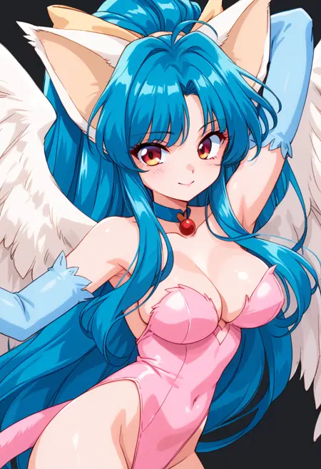 Trigger: limepony, long hair, blue hair female, animal ears, elbow gloves, pink leotard, wings