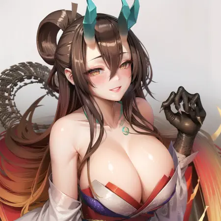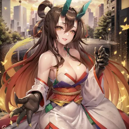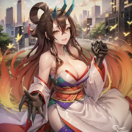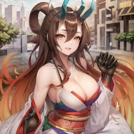 | 训练词汇 | a drawing of a woman in kimono, 1girl, breasts, claws, large breasts, solo, horns, white kimono, looking at viewer, long hair, gradient hair, hair between eyes, animal hands, brown hair, bare shoulders, cleavage, yellow eyes, smile, multicolored hair, tattoo, wide sleeves, slit pupils, kimono, outdoors, city background,已复制! woman with dragon tail and huge cleavage lays like a beast next to a chain, 1girl, gradient hair, breasts, large breasts, solo, multicolored hair, horns, brown hair, long hair, looking at viewer, animal hands, hair between eyes, cleavage, yellow eyes, monster girl, bare shoulders, wide sleeves, claws, very long hair, blush, slit pupils, kimono, smile已复制! |