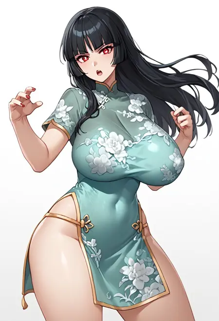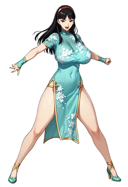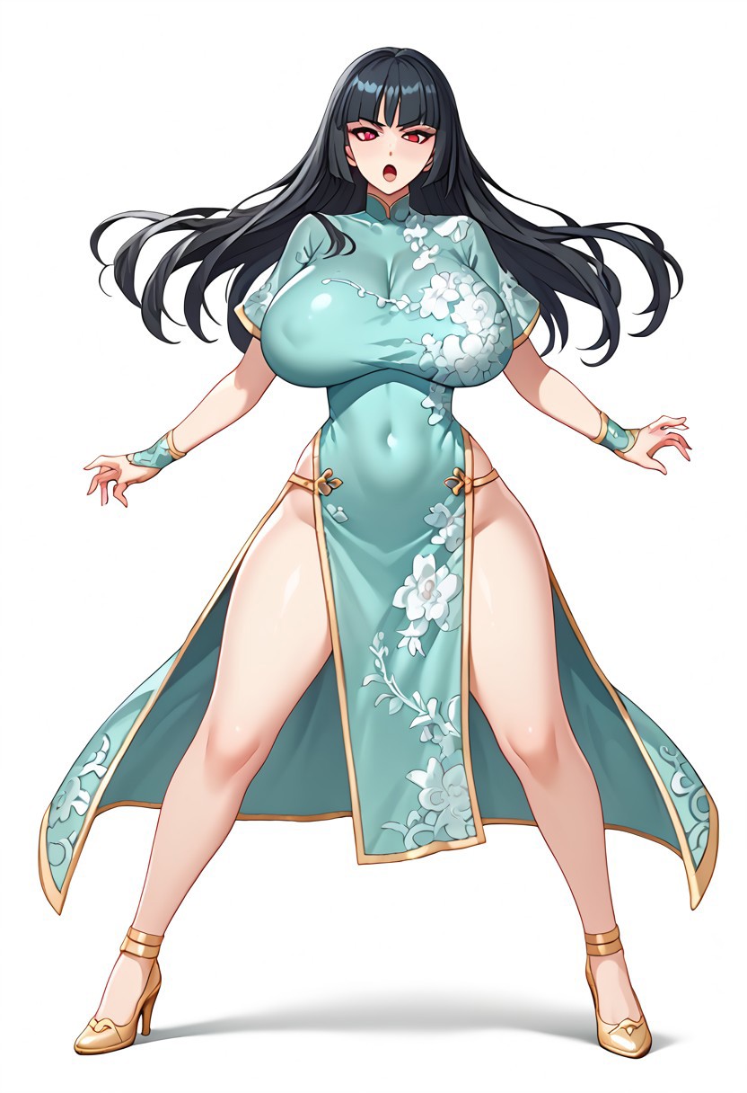TAGS2 : 연한 파란색 중국 드레스, 중국 옷, 배꼽 가림, 연한 파란색 하이힐, 격투 자세, 짧은 소매,