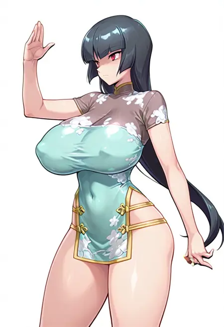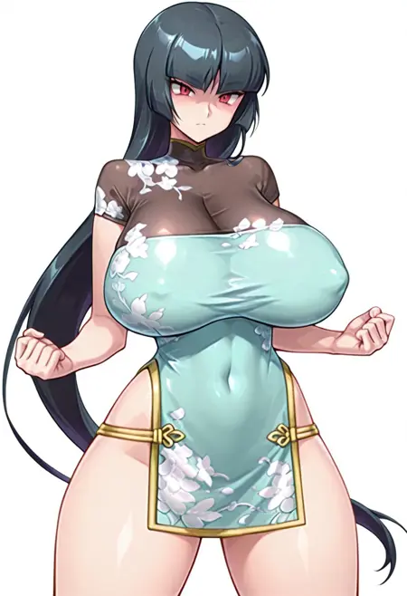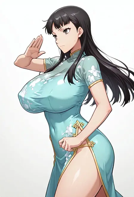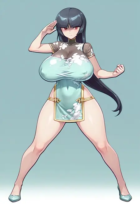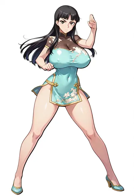 TAGS2 : light blue china dress, chinese clothes,covered navel,light blue high heel,fighting stance,short sleeve,