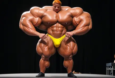 이두근, 어깨, 가슴 근육에 초점을 맞춘 과도하게 근육이 발달된 남성을 생성합니다.