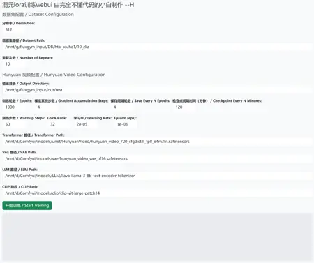 启动时,需在 ubuntu2\root\hunyuanlora\diffusion-pipe 目录下按住 Shift 并右键,选择在 Linux 终端中打开,然后输入 python app.py 启动。
