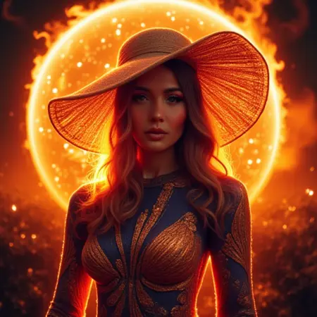 炎の流れよろいをまとった、輝く頭像。その目は、ほんのりと輝く炭火のように灯っている。片手には星の光で満たされた提灯を持ち、もう一方の手は小さなゆらめく炎を守護している。背後には、不屈と再生を象徴する炎のフェニックスが昇っている。顔や腕に刻まれた傷痕は、乗り越えた試練を語り、その表情は温かく、決して屈しない。