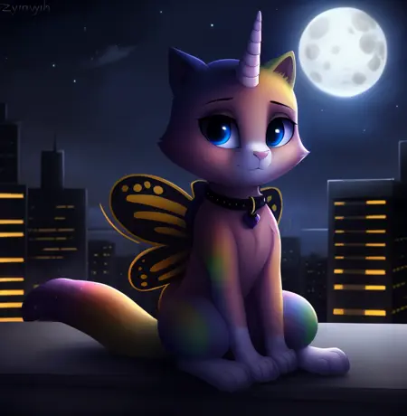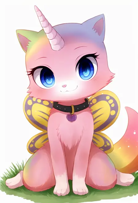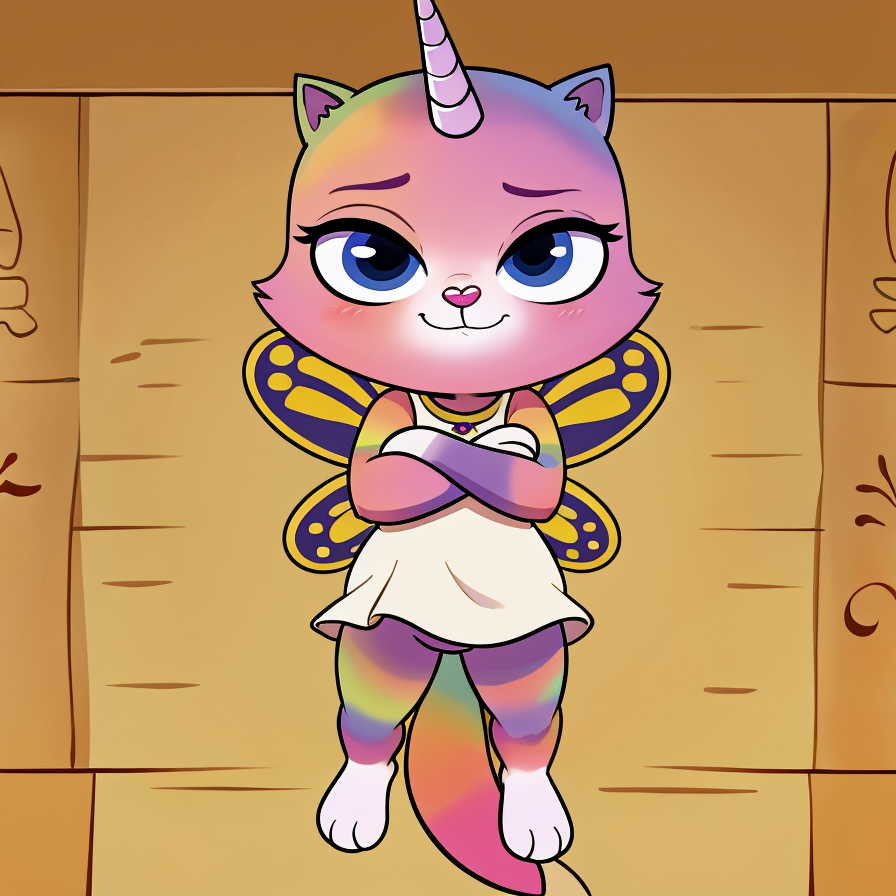 来自《彩虹蝴蝶独角兽小猫》的菲莉西蒂。基于Fluffyrock训练。