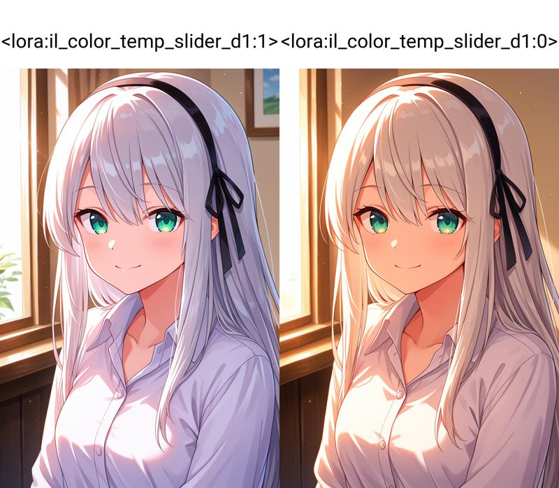 在更换服装时,可降低LoRA权重。若发现结果总是过“黄”(色彩温度偏暖),可使用此LoRA进行修正。