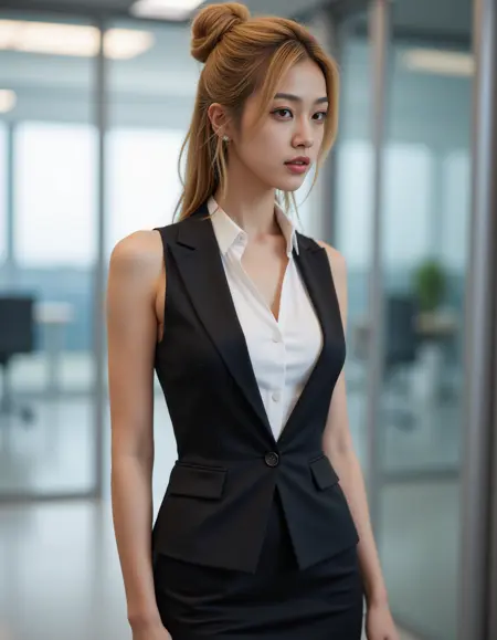 wssuit, black skirt and waistcoat, sleeveless