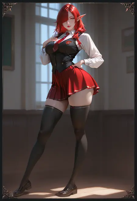 トリガー語 - bblblk、学ラン、黒いベスト、赤いネクタイ、赤いスカート、靴、黒い thighhighs