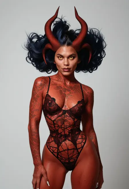 내 뿔은 곡선을 이루고 강력하며, 어둠의 마법에 대한 통치권을 상징하는 왕관이다. 밤과 어우러지는 검은 옷차림을 하고, 나는 위협적인 외모와는 대조적으로 우아하게 움직인다. 나는 순수한 어둠의 마법의 존재이며, 불의 마스터이자 끈질긴 자연의 힘이다.