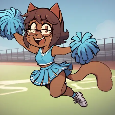 Cat, catgirl, female furry, brown fur, brown hair, short hair, brown eyes, glasses, shortstack
