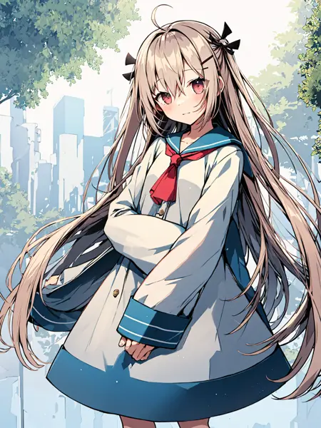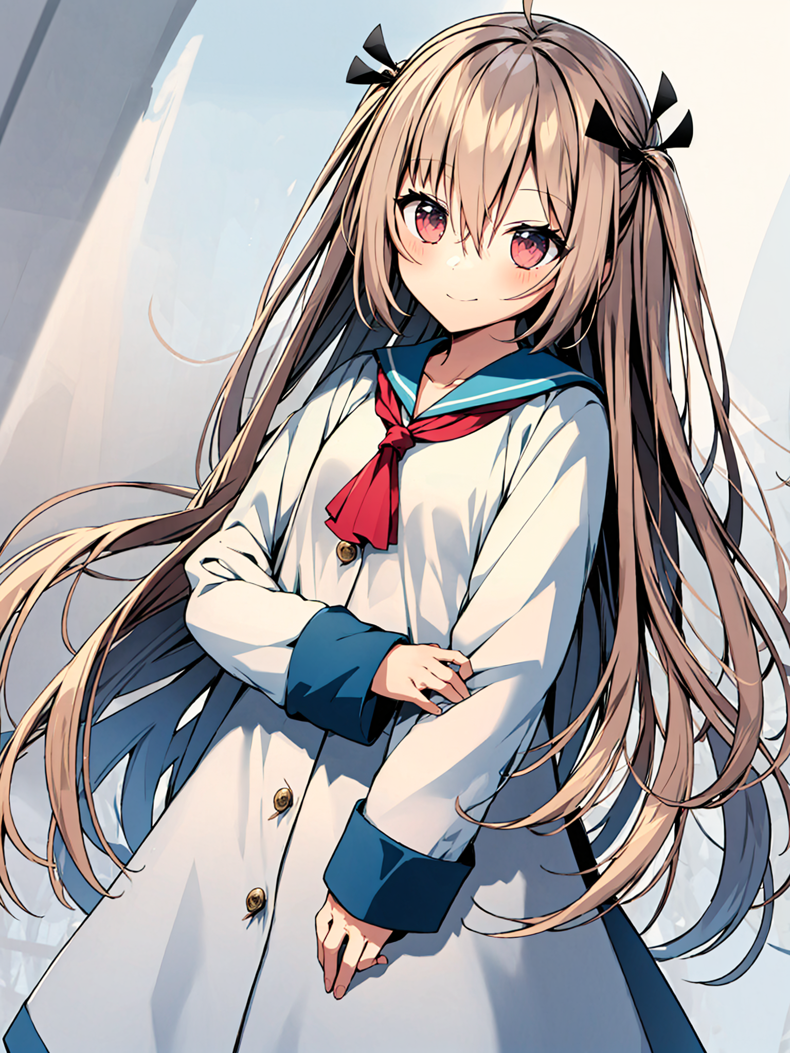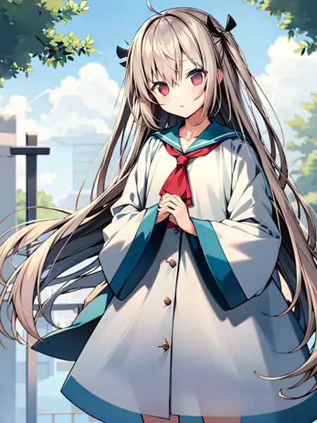 ATRI, dress, blue sailor collar, sailor dress, sailor collar, white dress, long sleeves,sleeves past wrists,
