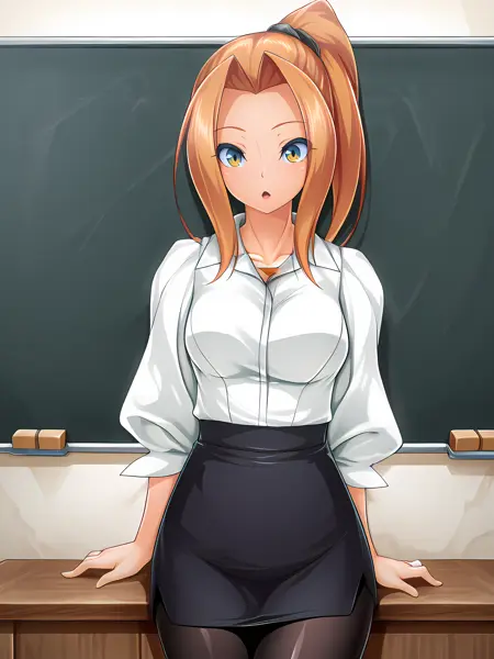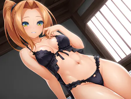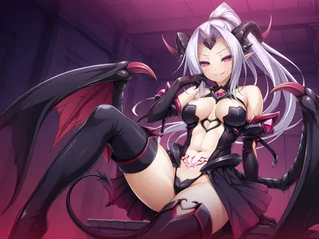 dark persona, dmgt outfit을 사용하여 교란 형태를 프롬프트하세요. dark persona 없이 단지 dmgt outfit만 사용하면 흥미로운 결과를 얻을 수 있습니다. Eyeglasses는 그녀의 안경을 프롬프트하는 트리거 단어입니다. lingerie outfit은 Souma LoRA의 샘플 이미지를 사용하며, 팬티, 게터 스트랩, 타이어하이스와 결합하면 상당히 정확한 표현을 얻을 수 있습니다.
