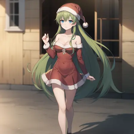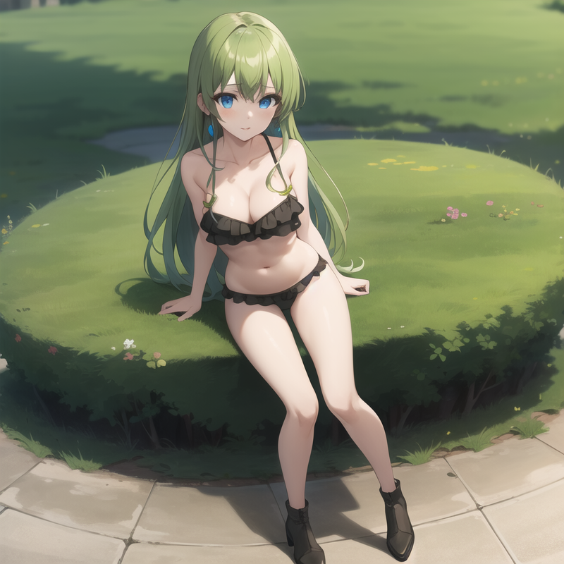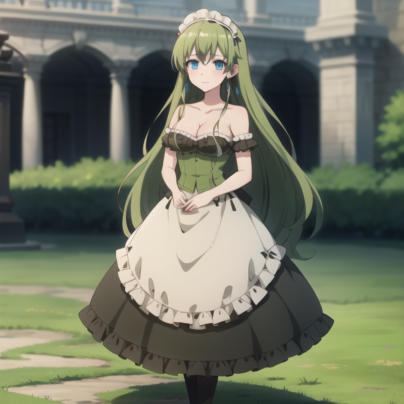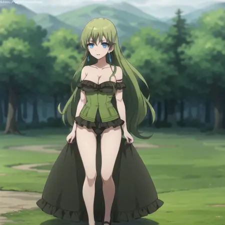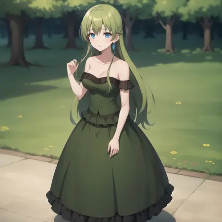 トリガーワード: icm-anastasia、緑色の髪、長い髪、緑色のドレス、青い目